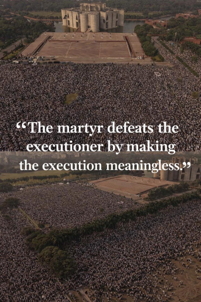 I never met Hadi. Yet I felt compelled to bid farewell to someone who felt closer than family. As I stepped out of my CNG to attend his janaza, I found myself swept into a current of humanity. Madrassa students, university students, laborers, shopkeepers, executives — all merged into one mass, chanting: